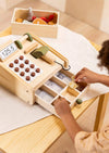Toddlers love to have fun shopping! From selecting food items to put in the cart to checking out, there is so much to do, discover and learn! The Wooden Cash Register is a perfect item to add to the playroom! It's a fun way to introduce your child to simple math, teaching them to count through play! This set is the perfect addition to the Mini Wooden Play Market Stand and complements the entire collection of wooden market accessories.*